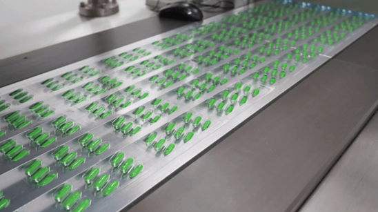 面对超微粉粒高黏度、低流动性的特点,御芝林巧妙引入定量填充技术。通过精密旋转,混合细粉被精准带入计量盘,再由填充杆均匀压入胶囊,实现了效率与质量的双重提升。